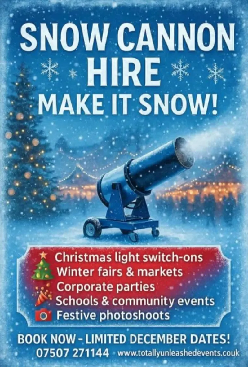 Whether you're planning a high-footfall public event, a private party, or a corporate celebration, our snow cannon is the perfect festive feature to make it magical.